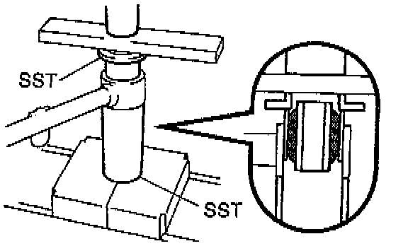 b. Using SST 09226-10010, 09506-35010 and a press, install a new bushing.
