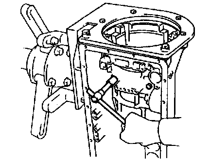 e. With wooden blocks or equivalent under the output shaft, stand the transmission on the output shaft.