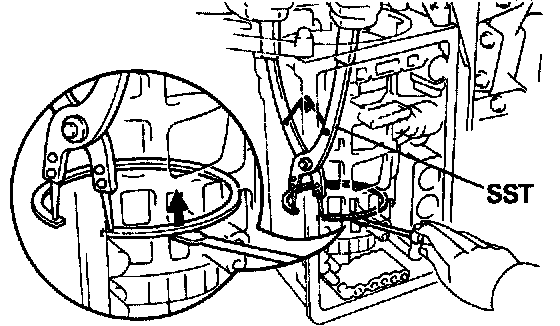 i. Install SST behind the No.1 brake piston and gradually lift it out of the transmission case.