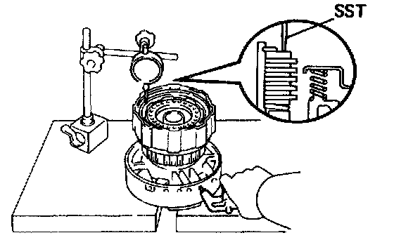 b. Place SST on the spring retainer, and compress the return spring with a press.