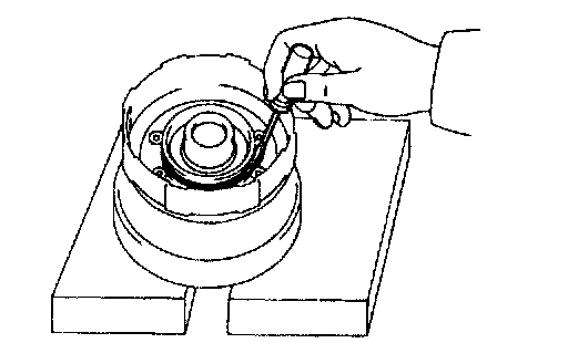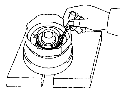 c. Install the snap ring with a snap ring expander. Be sure the end gap of the snap ring is not aligned with the spring retainer claw.