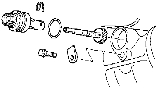 c. Remove the bolt and locking plate. Pry out the speedometer driven gear assembly.