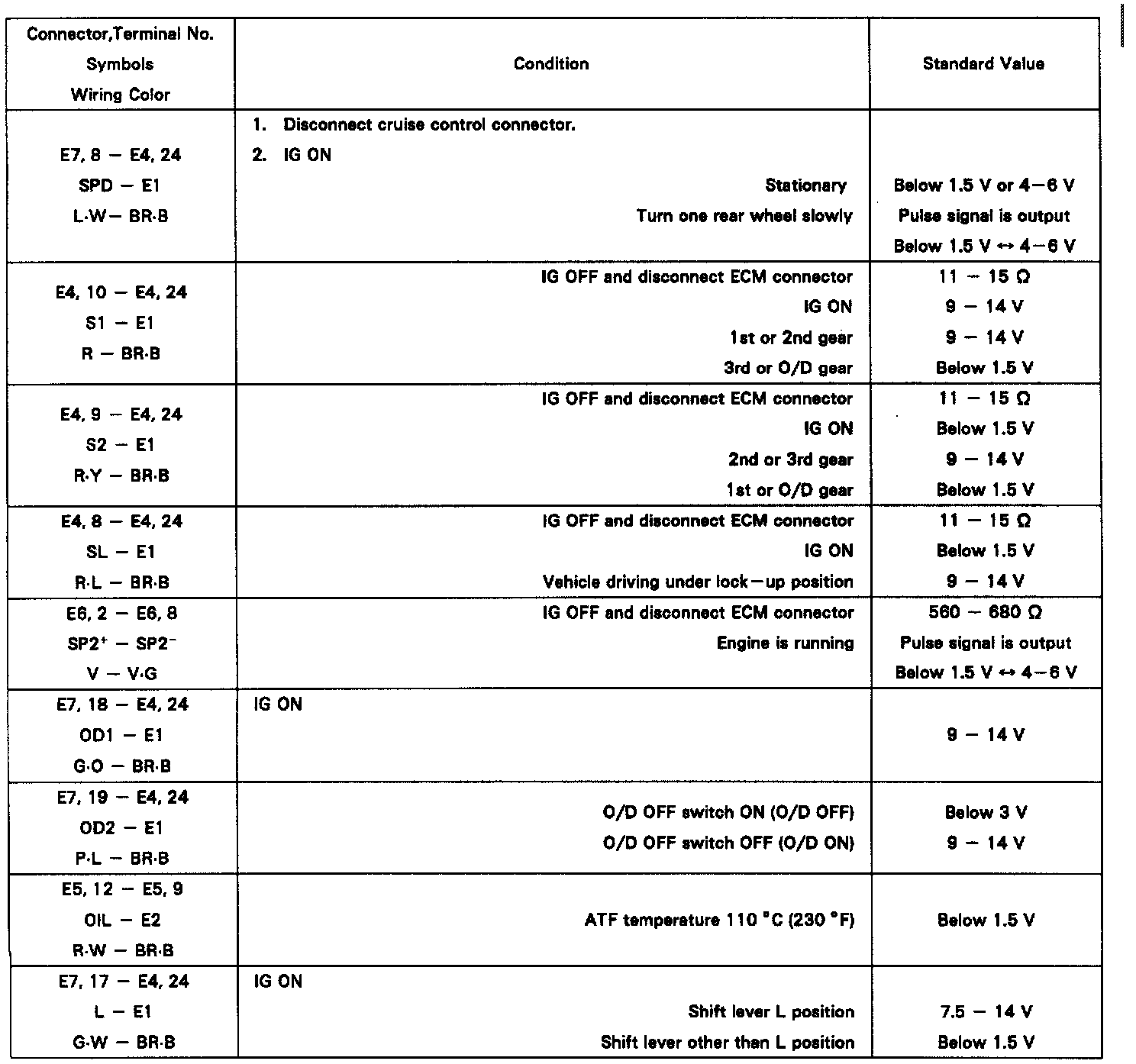 Standard Value Of ECM Terminals Chart 2 Of 2: