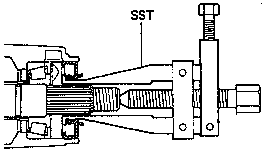 5. Remove rear bearing. Using SST 09556-22010, remove the rear bearing from the drive pinion.