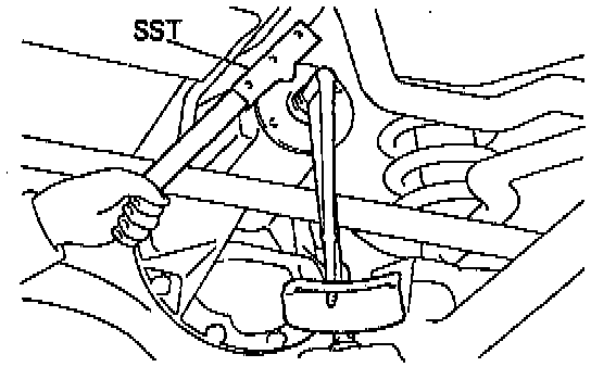 b. Using SST 09330-00021 to hold the flange, remove the nut and plate washer.