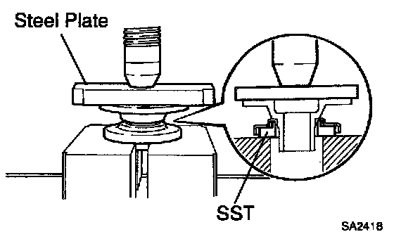 1. Remove dust deflector to companion flange. Using SST 0995~00020 and a press, remove the dust deflector.