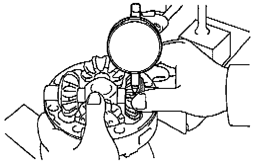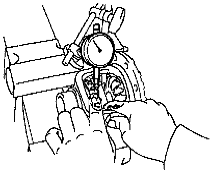 d. Using a dial indicator, measure the side gear backlash while holding one pinion gear toward the case.