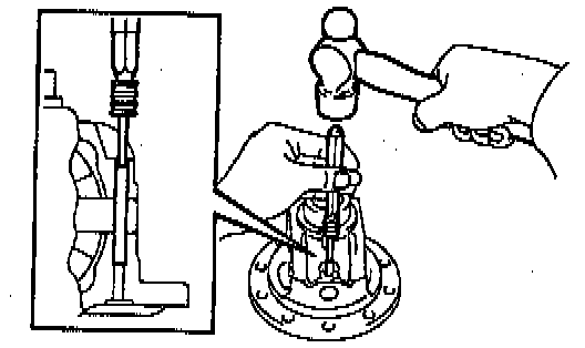 f. Using a chisel and hammer, stake the out side of the differential case pin hole.