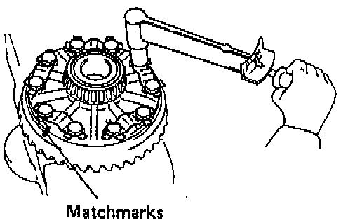 24. Adjust drive pinion preload. Using a torque wrench, measure the preload of the backlash between the drive pinion and ring gear.