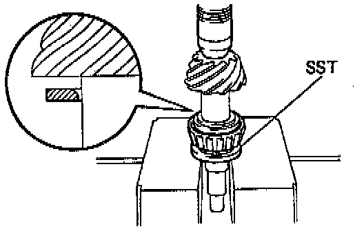 9. Install drive pinion front and rear bearing outer races. Using SST and a press, install the 2 outer races.