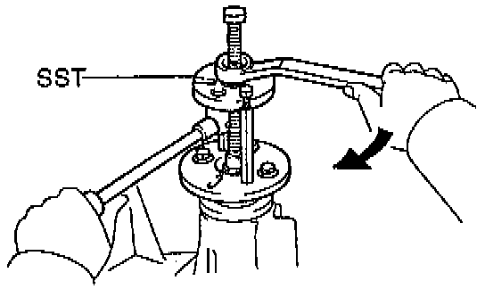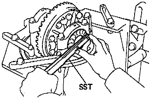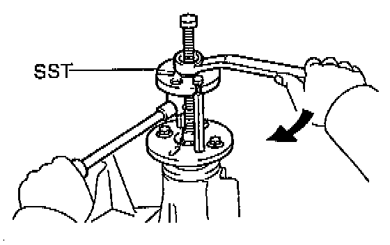 c. Using SST 09330-00021 to hold the flange, tighten the nut.