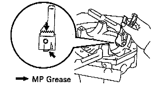 a. Apply MP grease on the rack of the shift fork and connecting part of the indicator switch.