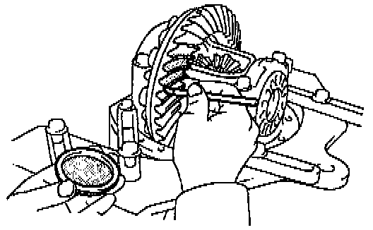 a. Install the differential case onto the carrier and tighten the adjusting nut just to where there is no play in the bearings.