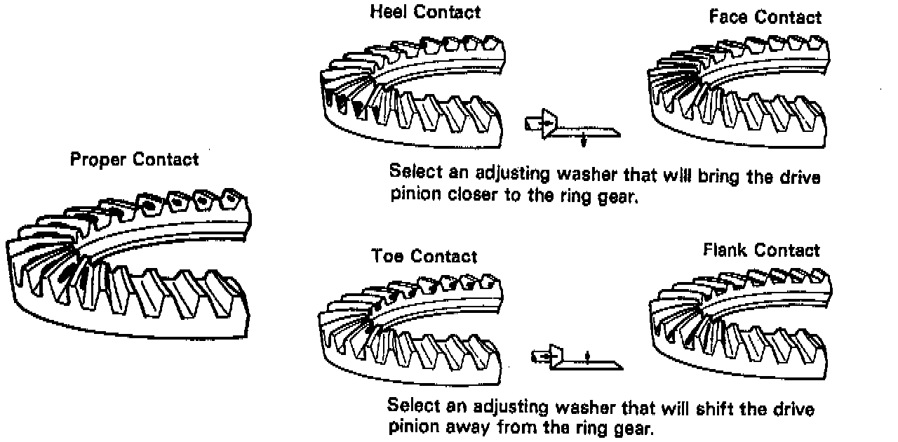 d. If the teeth are not contacting properly, use the following chart to select a proper washer for correction.