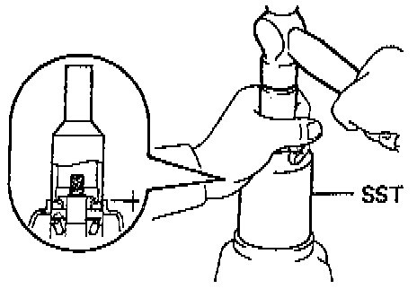 8. Install oil storage ring. Using SST 0931-60011 (09316-00011, 09316-00021) and a hammer, install a new oil storage ring.