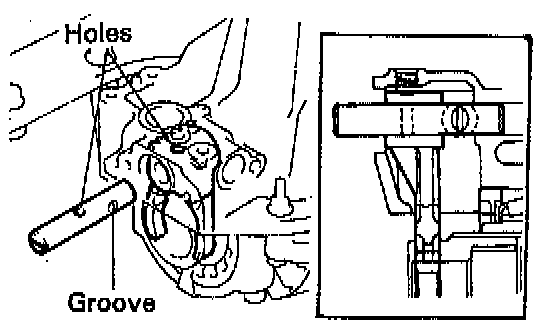 b. Install the fork shaft to match the hole of the shift fork and that of the shift fork shaft