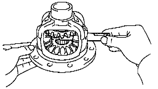d. Using a dial indicator, measure the side gear backlash with holding the one pinion gear toward the case.