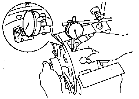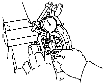h. Using a dial indicator, adjust the ring gear backlash until it is within the specification.