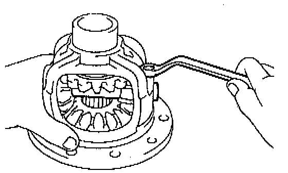 23. Adjust drive pinion preload. Using a torque wrench, measure the preload of the backlash between the drive pinion and ring gear.