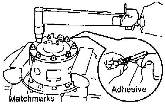b. Coat the threads of the bolts and pinion shaft pins with adhesive part No. 08833-00070, THREE BOND 1324, or equivalent
