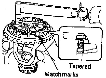 ^ Install the bolts so that the tapered part of the bolt is on the ring gear side.