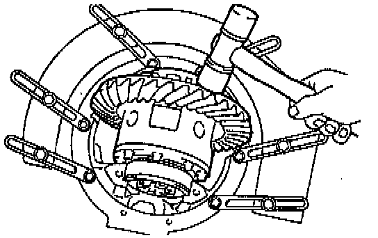 d. Make the plate washer and bearing smooth by tapping on the ring gear with a plastic hammer.