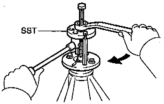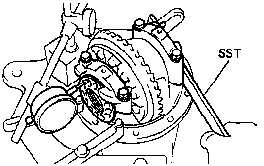 c. Using SST 09330-00021 to hold the flange, tighten the nut.