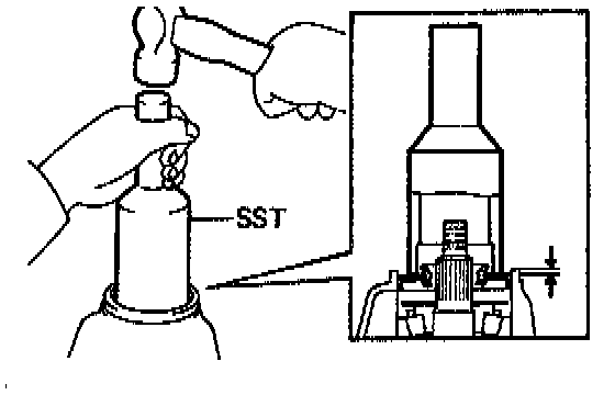 7. Install drive pinion front and rear bearing outer races. Using SST and a press, install the 2 outer races.
