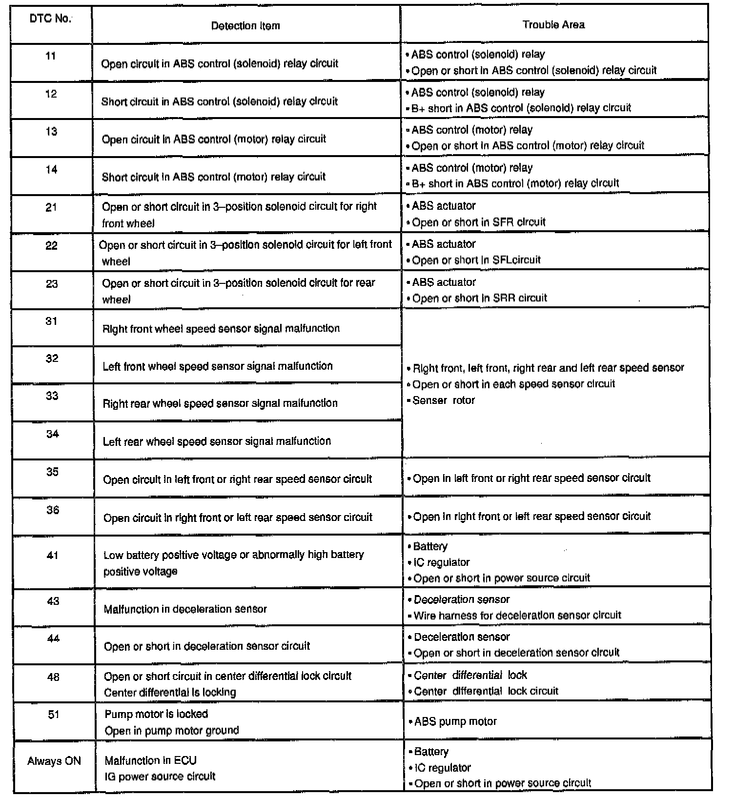 If a malfunction code is displayed during the Diagnostic Trouble Code (DTC) check, check the circuit listed for that code. For details of each code, refer to respective "DTC No." in Testing and Inspection - Procedures.