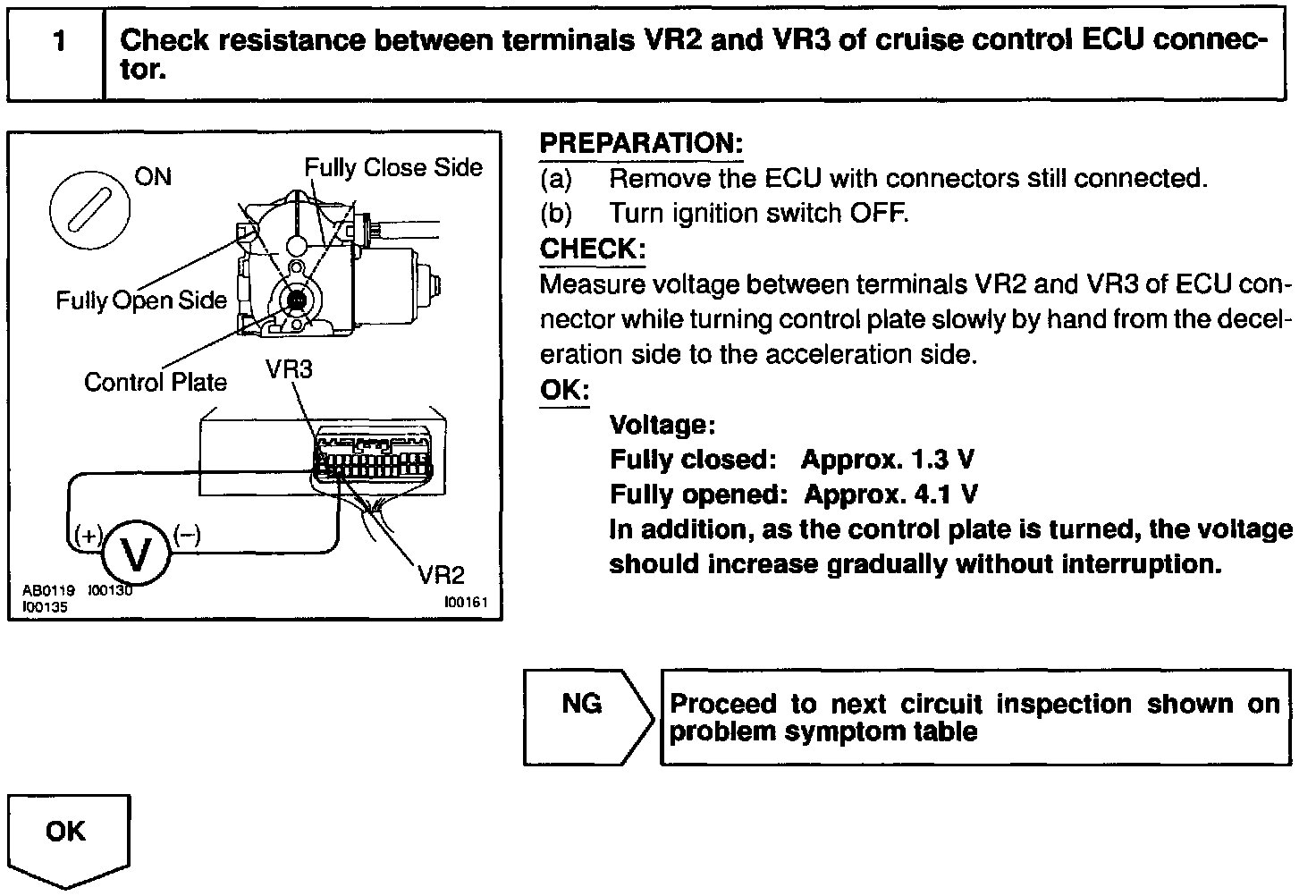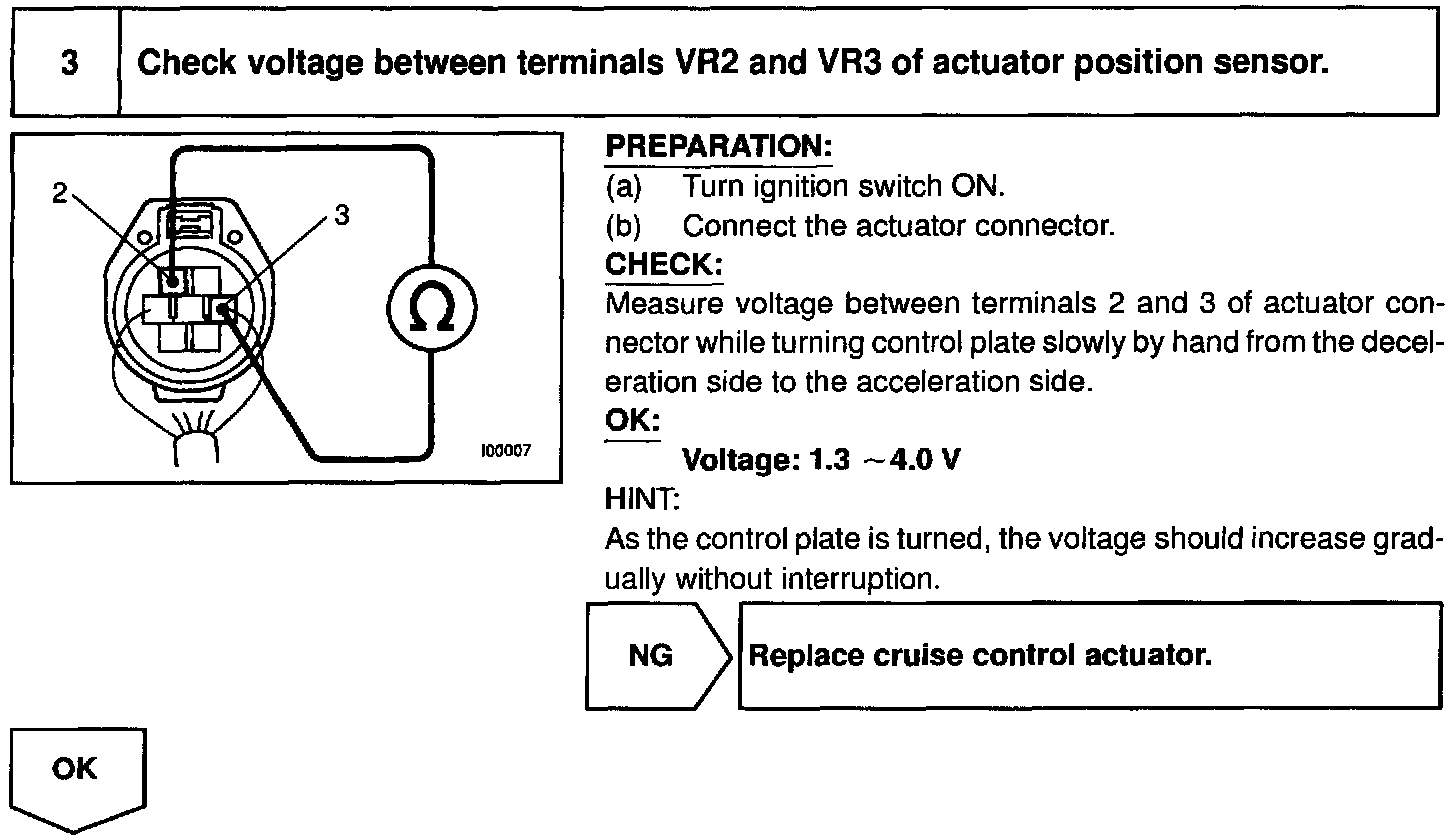 The circuit detects the rotation position of the actuator control plate and sends a signal to the ECU.