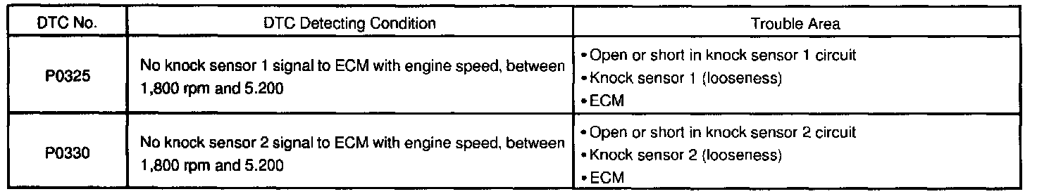 HINT: DTC P0325 is for the knock sensor circuit on the front side. DTC P0330 is for the knock sensor circuit on the rear side.