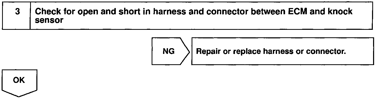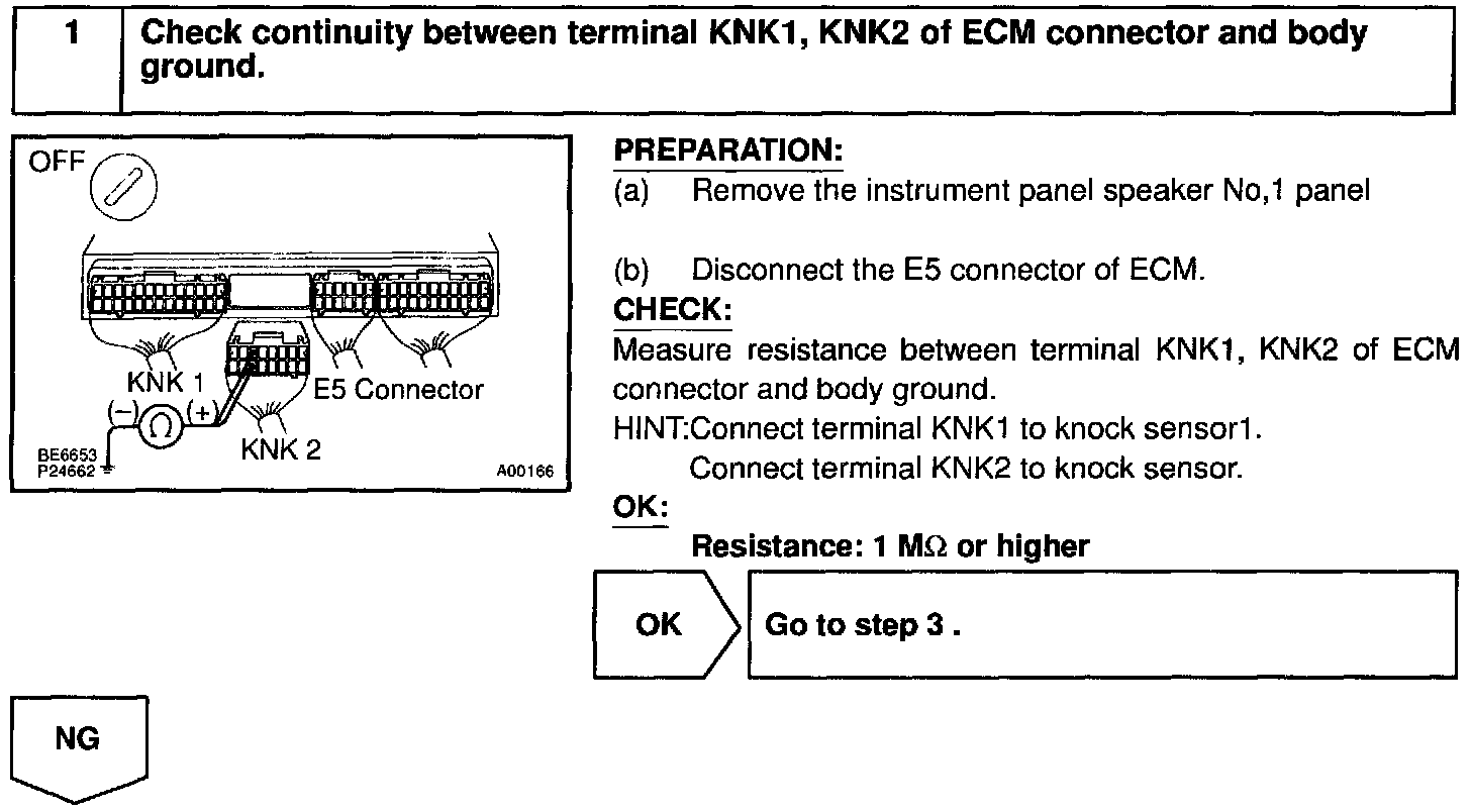 - With the engine racing (4,000 rpm) measure between terminal KNK1, KNK2 of ECM and body ground.
