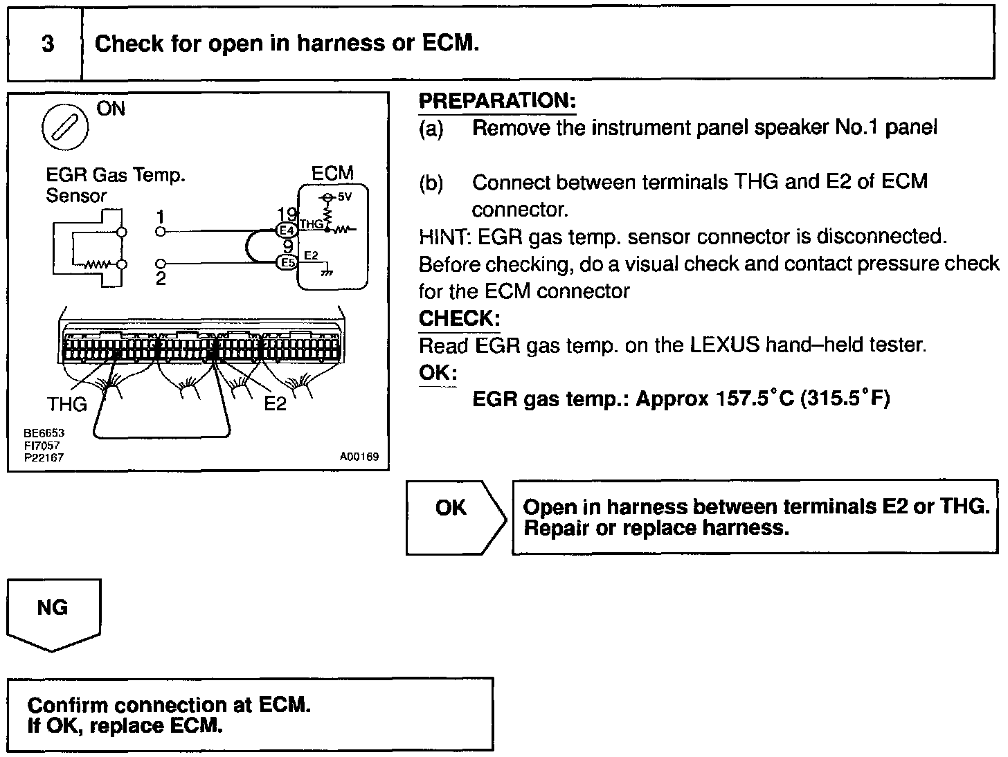 (1) Connect the OBD II scan tool or LEXUS hand-held tester to the DLC3.