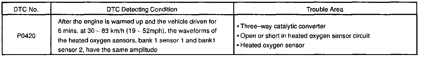 CIRCUIT DESCRIPTIONThe ECM compares the waveform of the oxygen sensor located before the catalyst with the waveform of the oxygen sensor located after the catalyst to determine whether or not catalyst performance has deteriorated.
