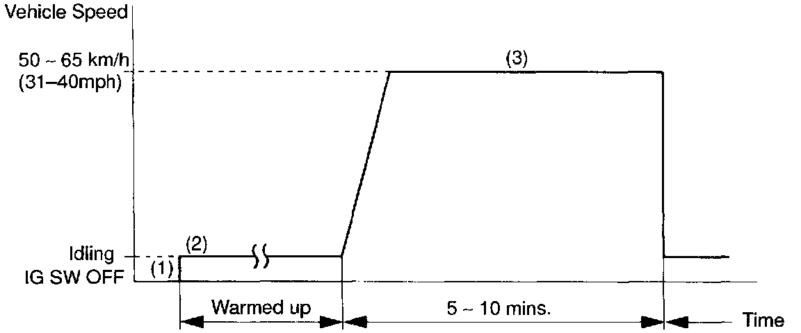 (3) Run the vehicle at 50 - 65 km/h (31-40 mph) for 5 - 10 mins.