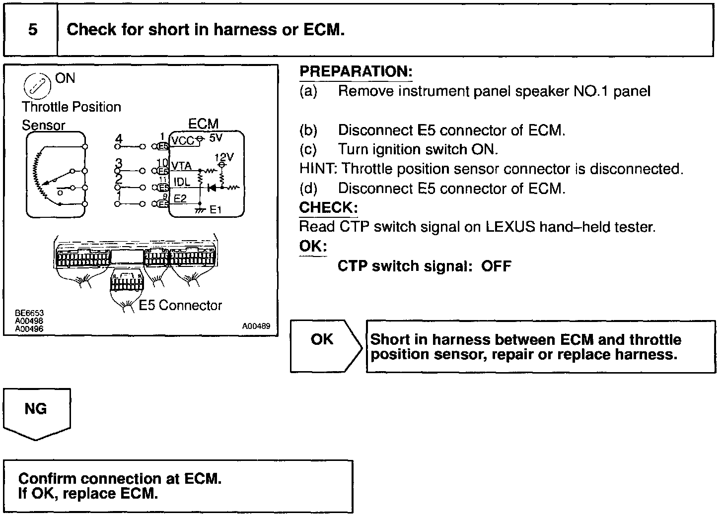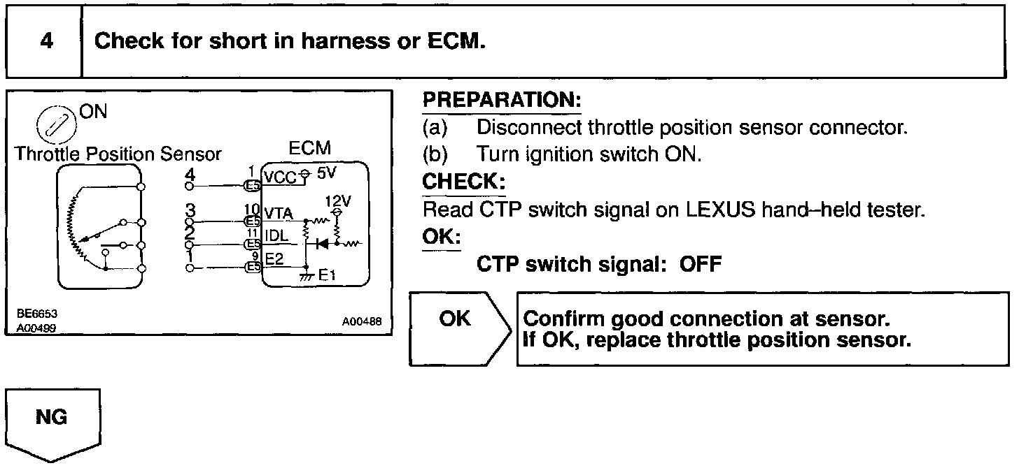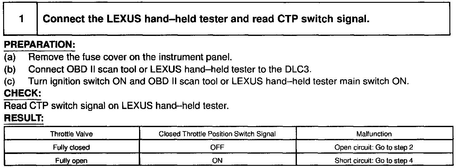 After confirming DTC P0510 use the LEXUS hand-held tester to confirm the closed throttle position switch signal from "CURRENT DATA".
