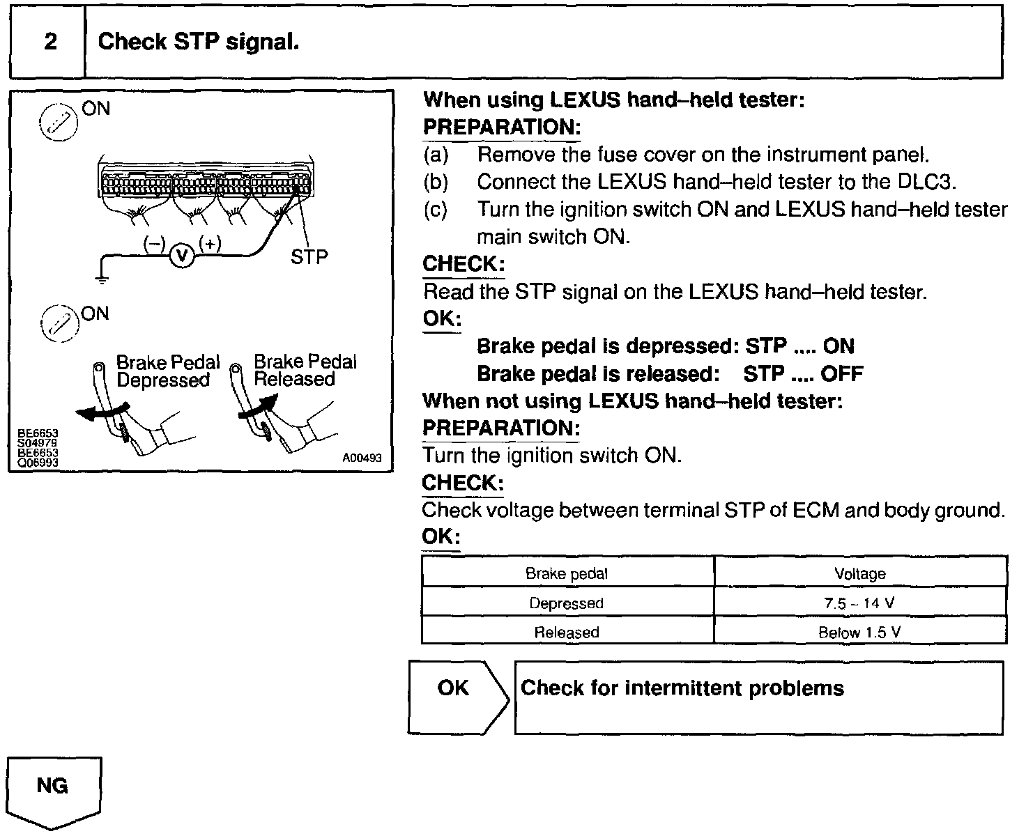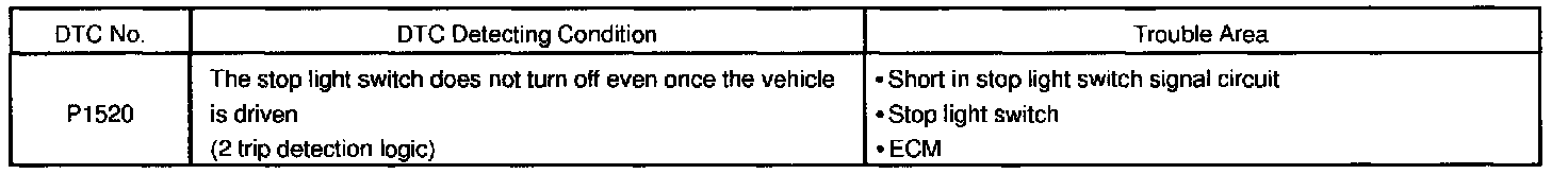 The STP signal is used mainly to control the fuel cut-off engine speed. (The fuel cut-off engine speed is reduced slightly when the vehicle is braking.)