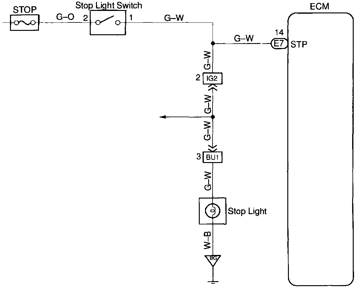 CIRCUIT DESCRIPTIONThis signal is used to detect when the brakes have been applied. The STP signal voltage is the same as the voltage supplied to the stop lights.