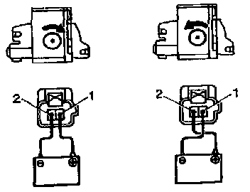 a. Connect the positive (+) lead from the battery to terminal 1 and the negative (-) lead to terminal 2, and check that the motor turns clockwise.