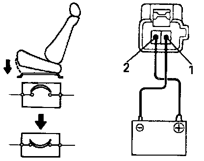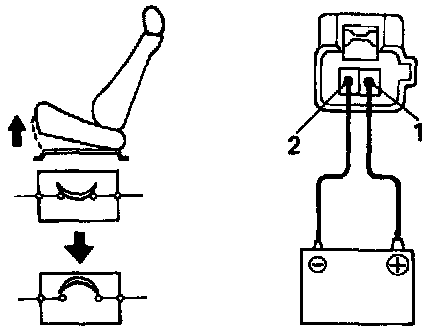 a. Connect the positive (+) lead and the negative (-) lead from the battery to the front vertical motor connector (illustrated terminals), and move the front edge of seat cushion to the highest position.