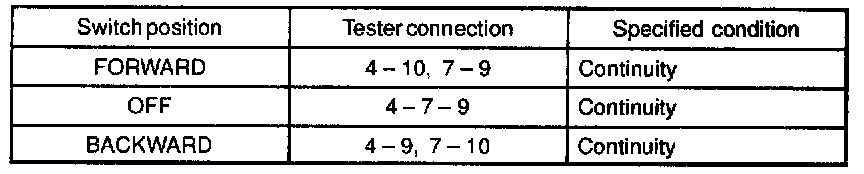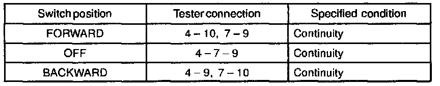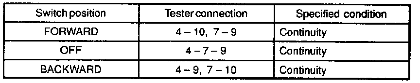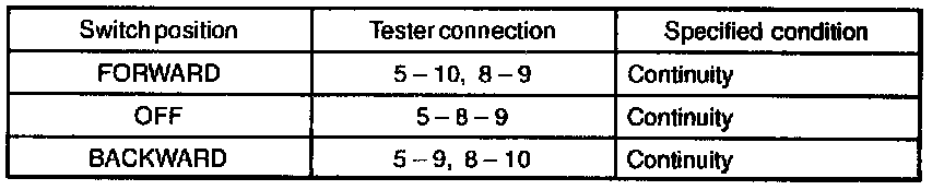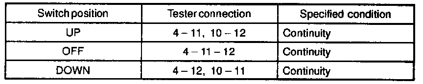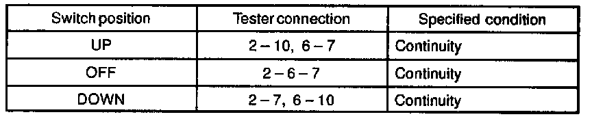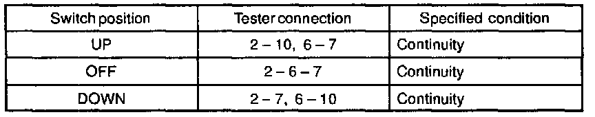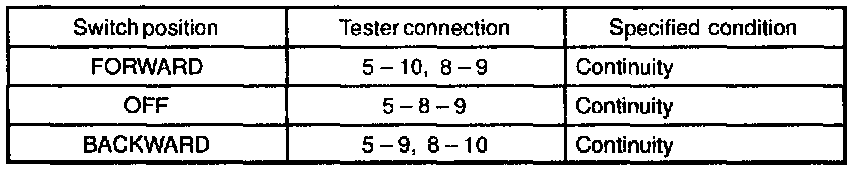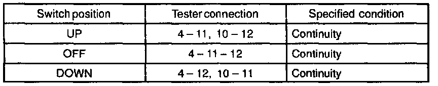 If continuity is not as specified, replace the switch.