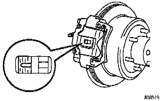 Check the pad thickness through the Caliper inspection hole and replace pads if not within specification.