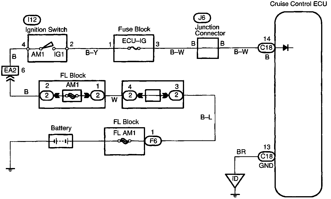 The ECU power source supplies power to the actuator and sensors, etc.. When terminal GND and the cruise control ECU case are grounded.
