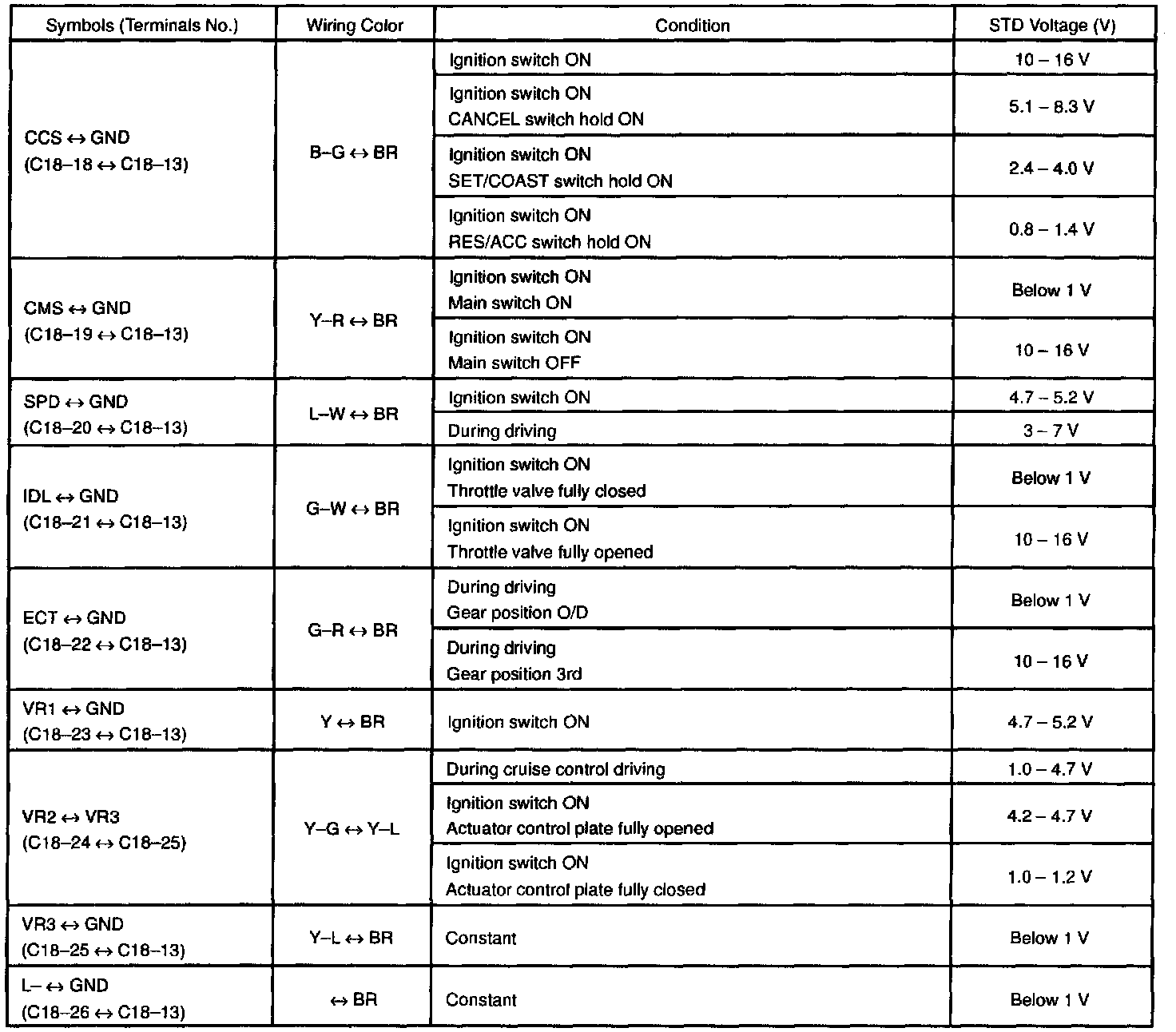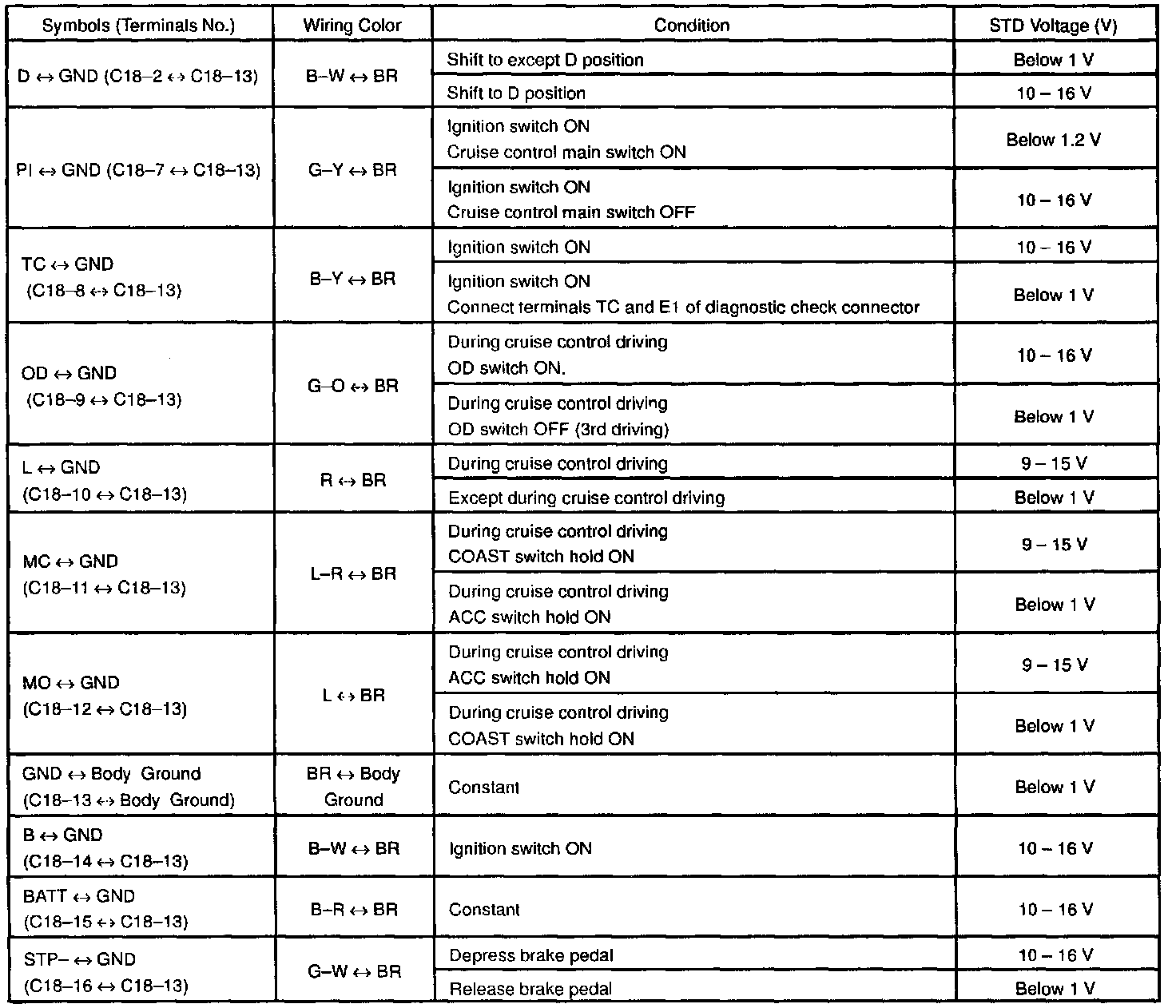 Pinout Values and Diagnostic Parameters