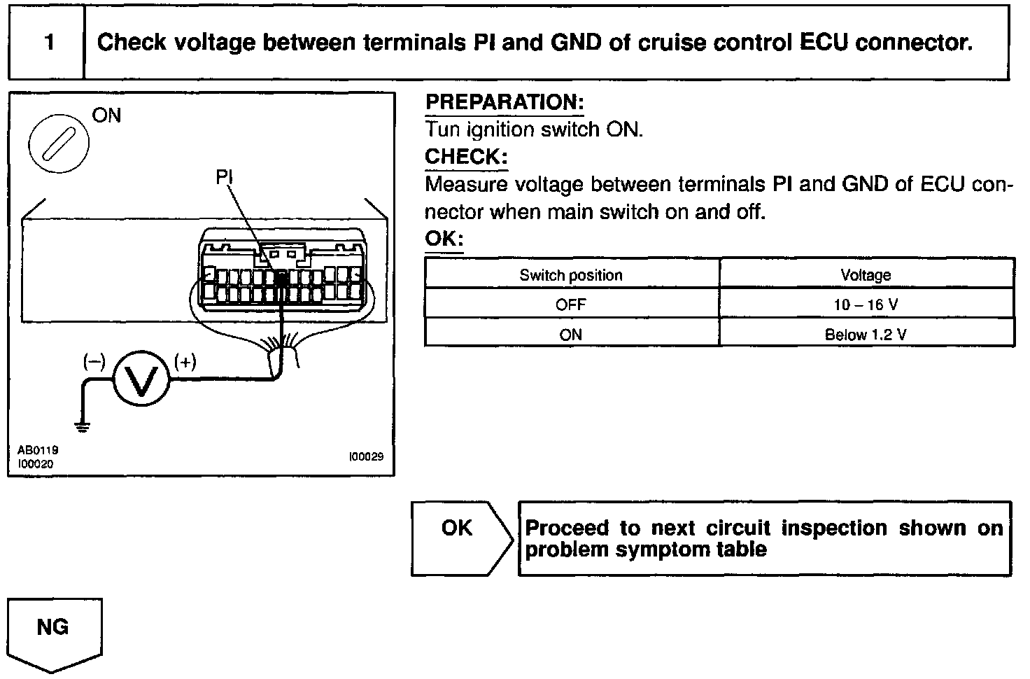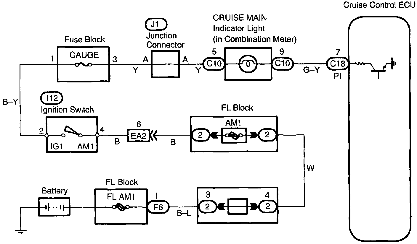 When the cruise control main switch is turned ON CRUISE MAIN indicator light lights up.