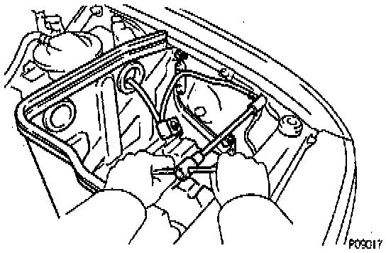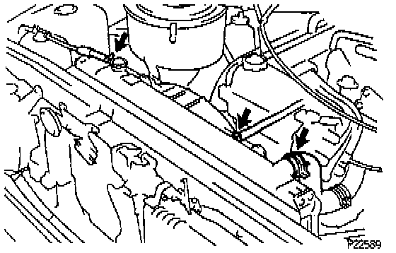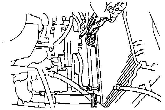 (d) Connect the oil cooler hose to the clamp on the fan shroud.