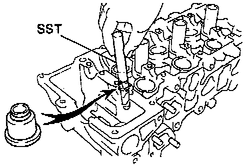(b) Apply adhesive to the spark plug tube hole of the cylinder head.