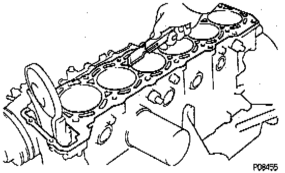 (b) Using a gasket scraper, remove all the gasket material from the cylinder block surface.