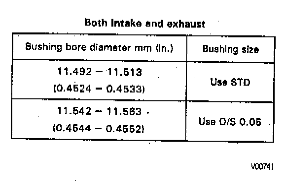 If the bushing bore diameter of the cylinder head is greater than 11.563 mm (0.4552 inch), replace the cylinder head.