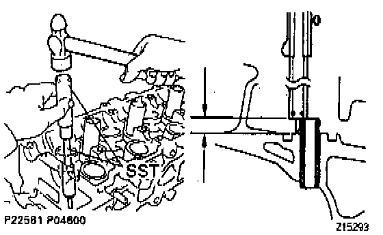 1. Gradually heat the cylinder head to 80° - 100° C (176° - 212° F).2. Using Special Service Tool (SST) Valve Guide Bushing Remover & Replacer Set # 09201 - 10000 (Valve Guide Bushing Remover & Replacer 7 # 09201 - 01070), Handle Set # 09950 - 70010 (Handle 100 # 09951 - 07100) or equivalents and a hammer, tap out the guide bushing.